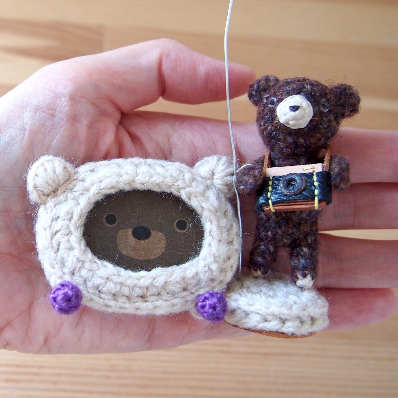 カメラを持ったBeanとクマフォトスタンドのセット